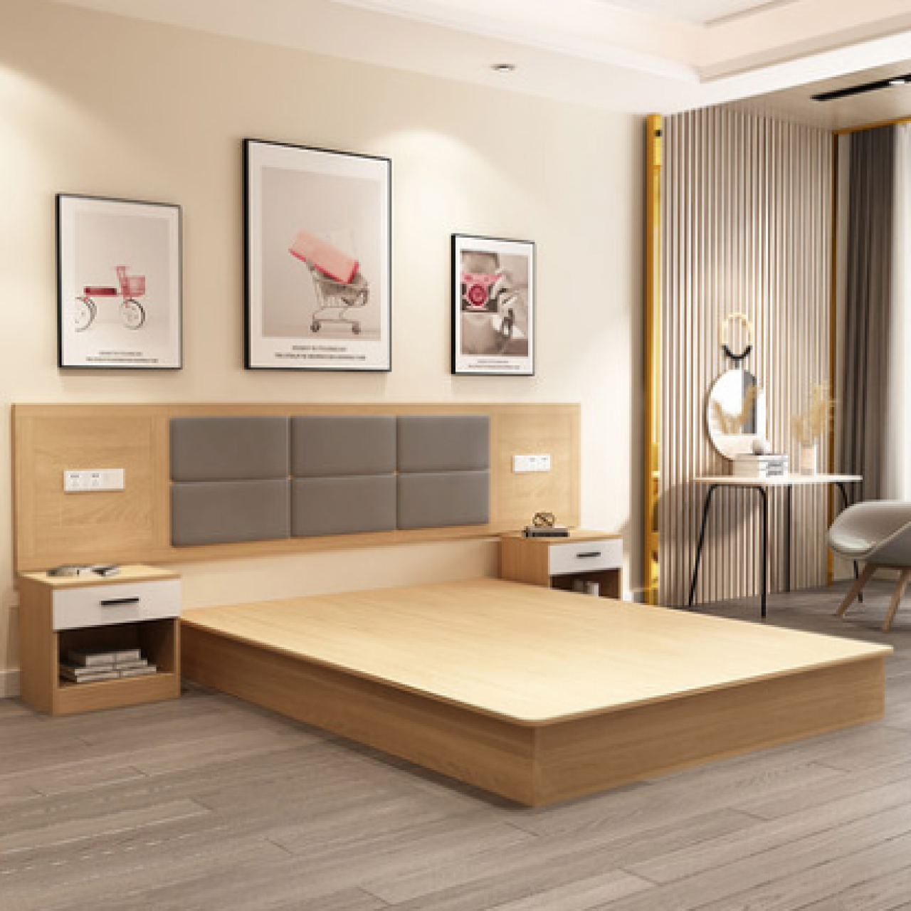宾馆床酒店床定制家具标间床全套民宿公寓客房快捷旅馆用床双床 免费策划方案,可定制